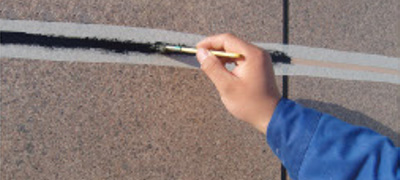 采用耐水腻子弥补基层缺陷,提高基层平整度及防水性能;待腻子干透后,涂刷一遍封闭底漆。封闭底漆一般无须另外加稀释剂进行稀释。其目的是清理基层,增加基层强度及涂膜的黏结强度。一般采用辊涂施工,也可以喷涂施工。
